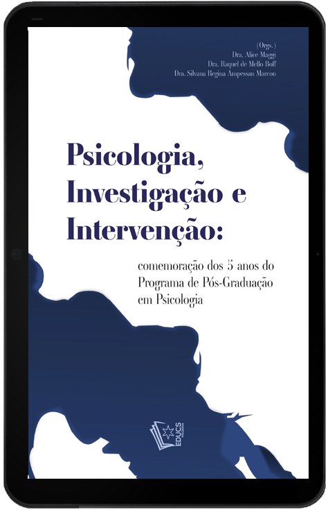 A obra Psicologia, investigação e intervenção: comemoração dos 5 anos do Programa de Pós-Graduação em Psicologia apresenta resultados de estudos realizados no Programa de Pós-Graduação em Psicologia (PPGPSI), Mestrado Profissional, da Universidade de Caxias do Sul (UCS). Este programa é resultado de muitos esforços, razão pela qual este e-book se reveste de múltiplos significados. Representa, por um lado, o sucesso da Psicologia na Graduação da UCS, que tem formado um expressivo número de colegas na cidade
