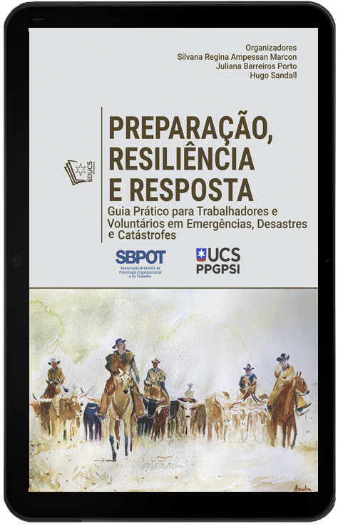acontecimentos que resultam em um superlativo de perdas humanas e materiais que não causam apenas danos imediatos às comunidades afetadas, mas também geram consequências a curto, médio e longo prazo, afetando a matriz da vida, a saúde mental, a recuperação econômica e a reconstrução social. É nesse cenário desafiador que trabalhadores, profissionais e voluntários da linha de frente, desempenham um papel fundamental. Eles são os responsáveis por oferecer respostas rápidas e eficazes, muitas vezes, em condições extremas, imprevisíveis e com poucos recursos. No entanto, para que suas ações sejam realmente precisas e eficazes, é necessário ter acesso a ferramentas e conhecimentos baseados em evidências científicas que orientem a tomada de decisões pragmáticas. Este guia foi desenvolvido com o objetivo de fornecer exatamente isso: uma fonte de informações práticas e baseadas em evidências para aqueles que atuam diretamente em contextos de emergências em saúde pública e desastres de grandes dimensões. O conteúdo é fruto de uma colaboração entre a Sociedade Brasileira de Psicologia Organizacional e do Trabalho (SBPOT) e o Grupo de Pesquisa do Programa de Pós-Graduação em Psicologia da Universidade de Caxias do Sul (PPGPSI - UCS), que estuda os fatores psicossociais no contexto de trabalho. O que você encontrará neste guia, que tem como foco o cuidado humano a partir da psicologia organizacional e do trabalho, são pistas sólidas e consistentes que auxiliarão na elaboração de planos, estratégias, intervenções e orientações. Tenha uma boa leitura e um excelente momento de aprendizagem.