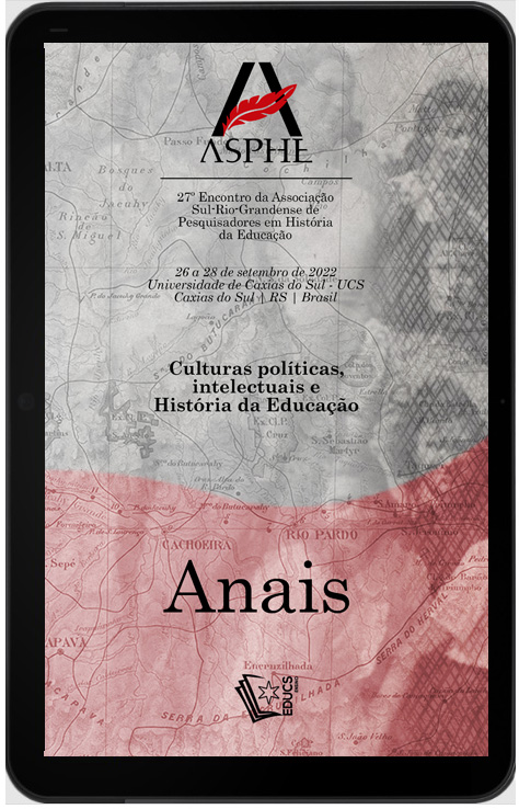 O 27º Encontro da Associação Sul-Rio-Grandense de Pesquisadores em História da Educação (ASPHE) tem como objetivo a discussão das culturas políticas, os intelectuais e as relações com a História da Educação. Nesse sentido, a História da Educação associa-se ao processo histórico de desenvolvimento e seus aspectos políticos, sociais e culturais percebidos nas estratégias e táticas elaboradas pelos sujeitos nas práticas e na disseminação de valores e normas estabelecidas pelos grupos sociais nas suas mais distintas experiências educativas. Nessa expectativa, a Universidade de Caxias do Sul (UCS), por meio dos grupos de pesquisa, da linha de pesquisa História e Filosofia da Educação e dos Programas de Pós-Graduação em Educação (PPGEdu) e em História (PPGHis), espera receber pesquisadores e interessados no campo da História da Educação dispostos a contribuir e promover a reflexão sobre temáticas relativas à historicidade da Educação, colaborando com a discussão de uma agenda de estudos históricos. Temática: Culturas políticas, intelectuais e História da Educação