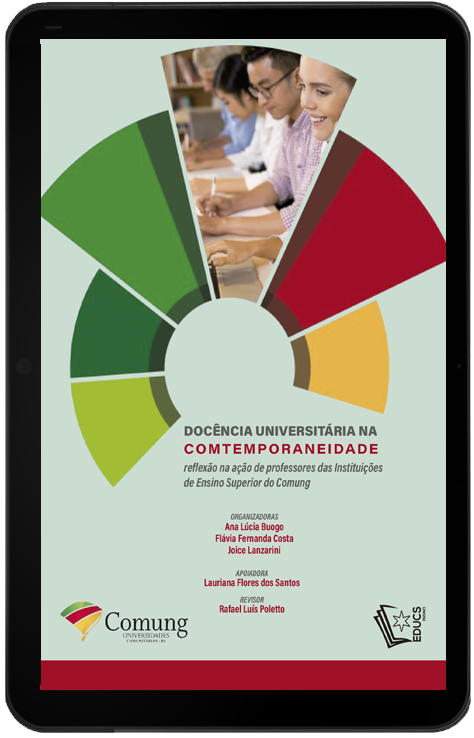 A publicação deste e-book marca o fechamento daquela que talvez tenha sido a mais desafiadora proposta de formação de professores universitários em rede planejada e executada pela Rede de Formação de Professores do Consórcio das Universidades Comunitárias Gaúchas (Comung), que se materializou por meio do Curso de Pós-Graduação Lato Sensu em Docência Universitária na Contemporaneidade. Reunimos nesta publicação os artigos elaborados a partir dos Projetos de Intervenção aplicados nas instituições comunitárias pelos professores alunos do referido Curso. Os textos apresentam as propostas e ações desenvolvidas nos referidos Projetos de Intervenção, bem como a descrição dos resultados obtidos e a reflexão sobre os processos de ensinar e de aprender em seus diversos âmbitos: metodologias, avaliação da aprendizagem, Educação a Distância e Trabalho Discente Efetivo (TDE).